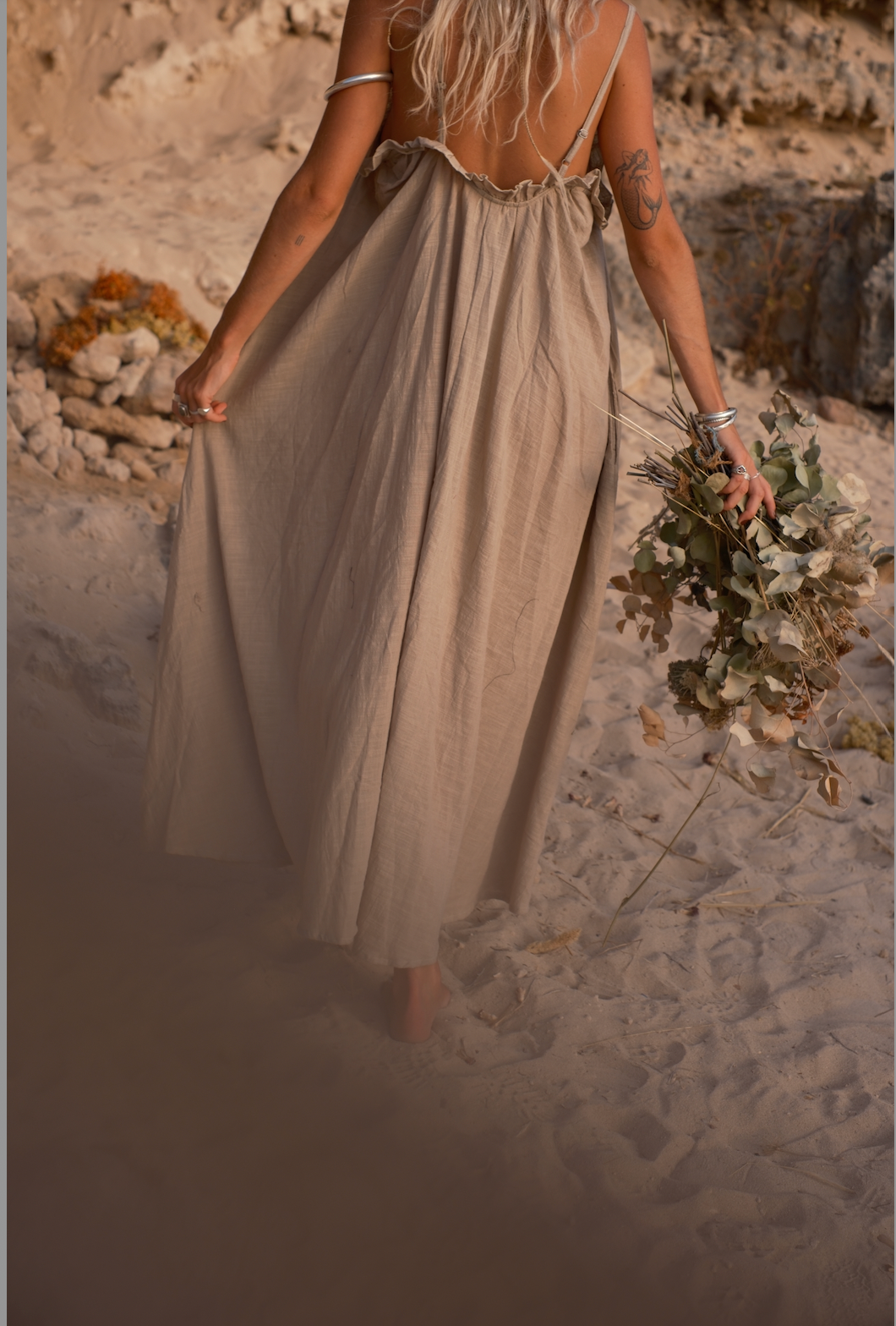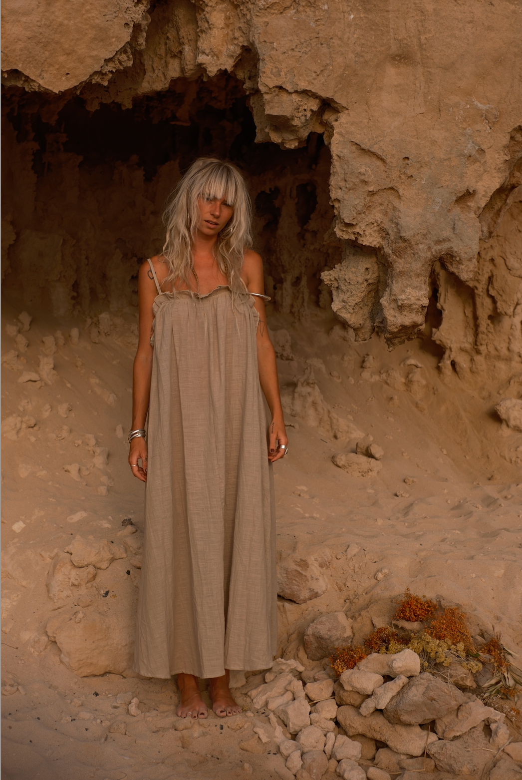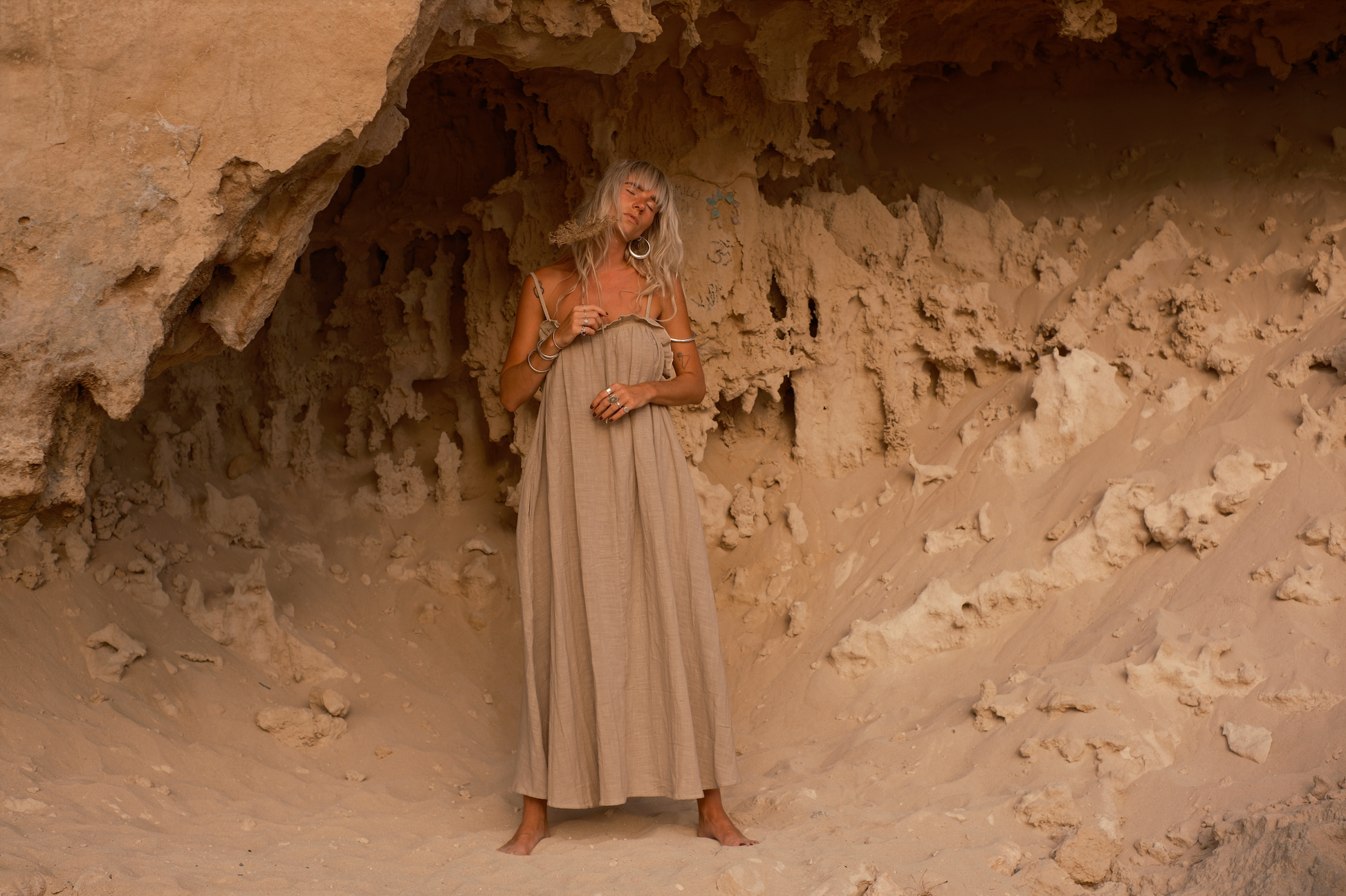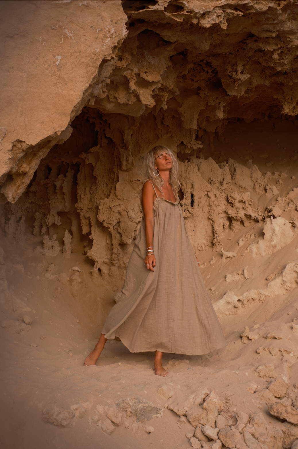 Soft, simple, and effortlessly chic — the Luna Dress is your go-to piece for slow summer days and mindful moments. With its relaxed oversized silhouette and practical pockets, it's made for movement, comfort, and grounding.